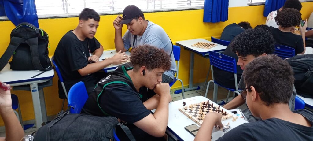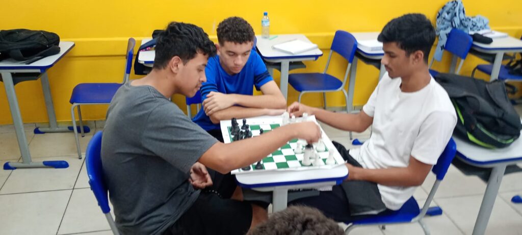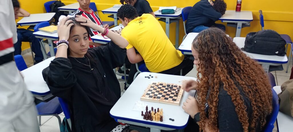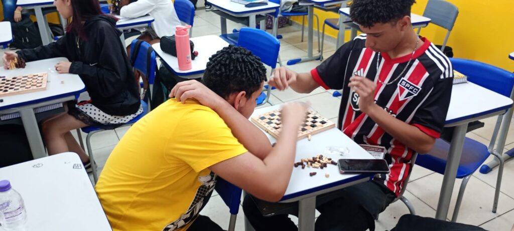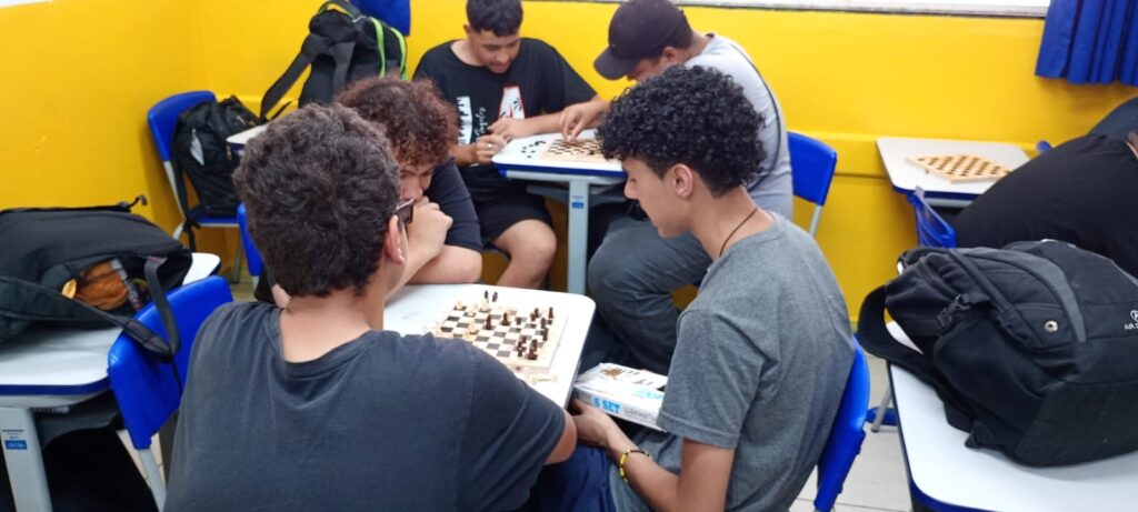 Jogos de Tabuleiro: Clássicos dividido em várias oficinas como Uno (Luanne e Nathalia), xadrez (Eduardo e Luciano) e dominó (João e Adailton) garantem diversão em grupo. Esses jogos estimulam o raciocínio lógico e a interação social, sempre com muitas risadas.