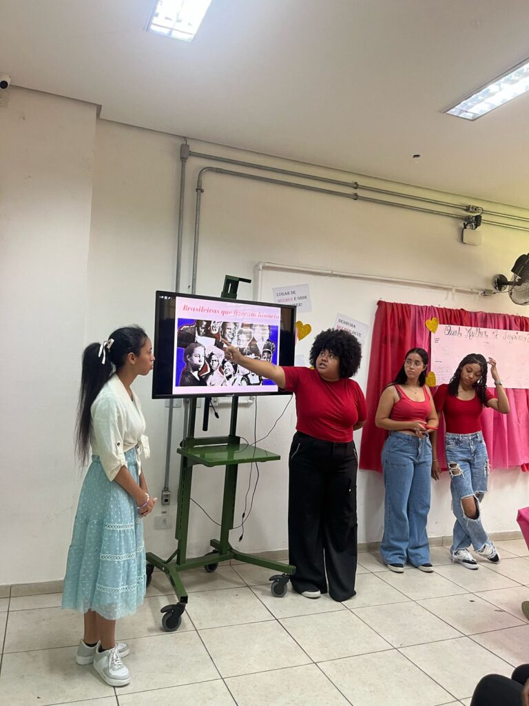 Os alunos participaram ativamente, fazendo perguntas e compartilhando suas próprias reflexões sobre o papel das mulheres na sociedade. Foi um momento de aprendizado e conscientização que certamente ficará marcado na memória de todos.