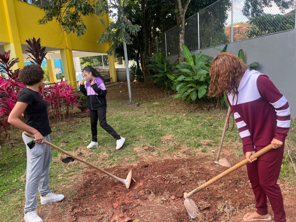 Já imaginou trocar a sala de aula por um espaço ao ar livre, onde o aprendizado acontece de forma prática e divertida? É exatamente isso que a eletiva Plantando Saúde, da professora Lionete, proporciona! Com atividades imersivas e dinâmicas, os alunos se conectam com a natureza, exploram conceitos de sustentabilidade e colocam a mão na terra – literalmente!